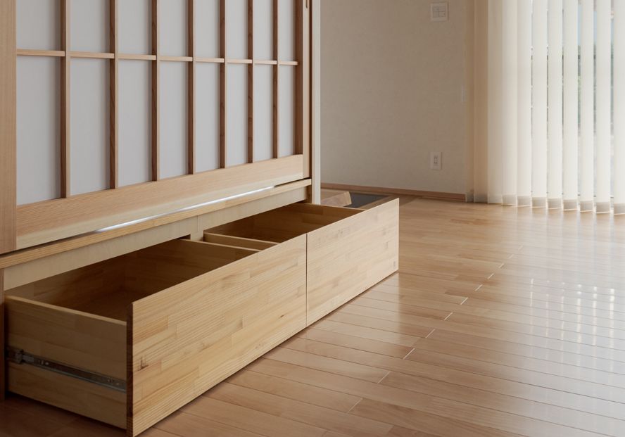 それが造作収納動線。後から家具を置くのは、一時的に床に物を置く感覚に近いもの。