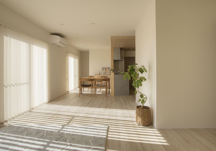 冬はたっぷりの陽射しと明るさを確保し、結露はしません。夏は陽射しを遮蔽し明るさだけをとりいれます。全室の扉を開放すればリビングのエアコンだけで家中を快適に保つことができます。